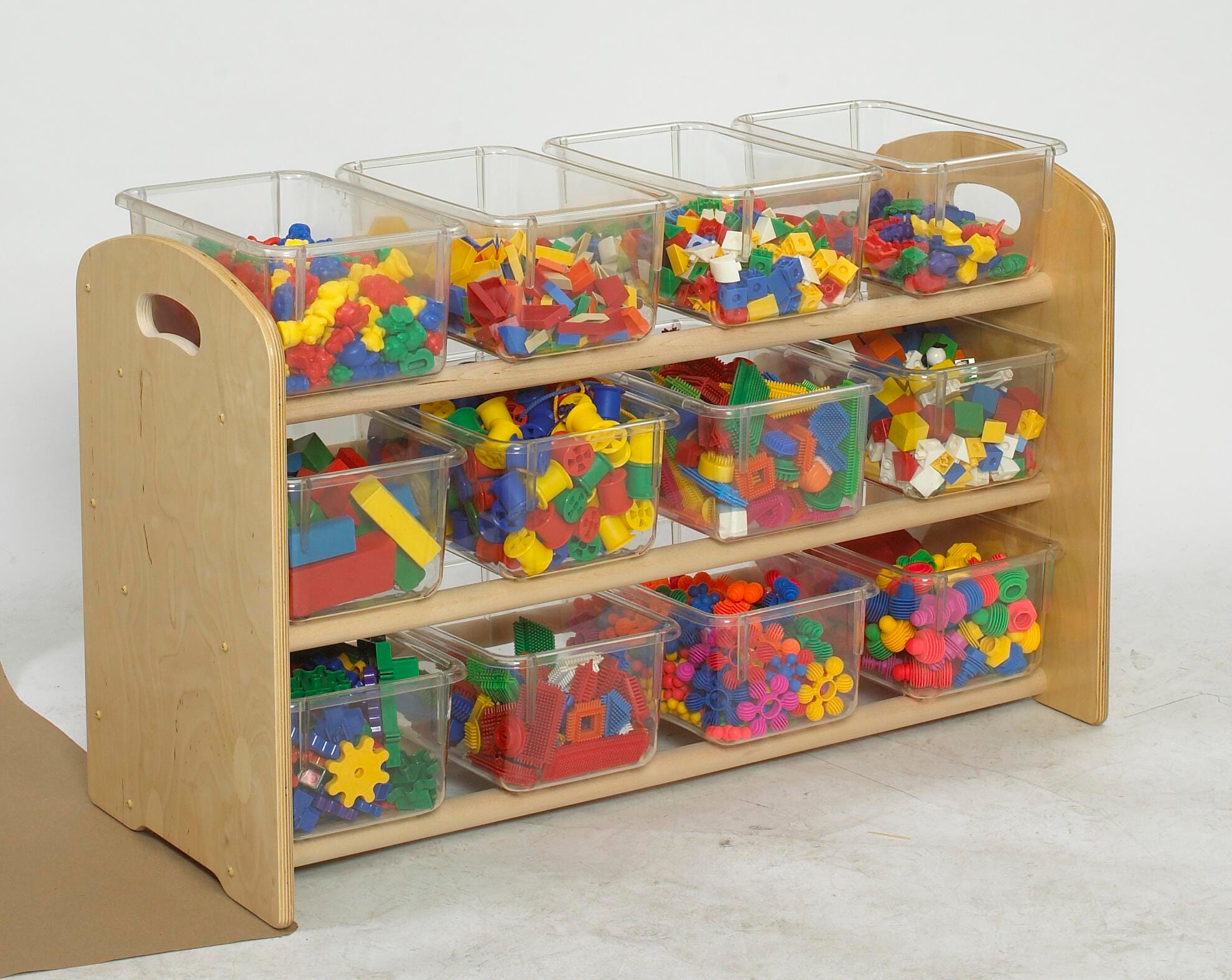 Complete your space with a stylish and practical storage rack for classrooms, childcare centers, and playrooms. Includes 12 clear trays.