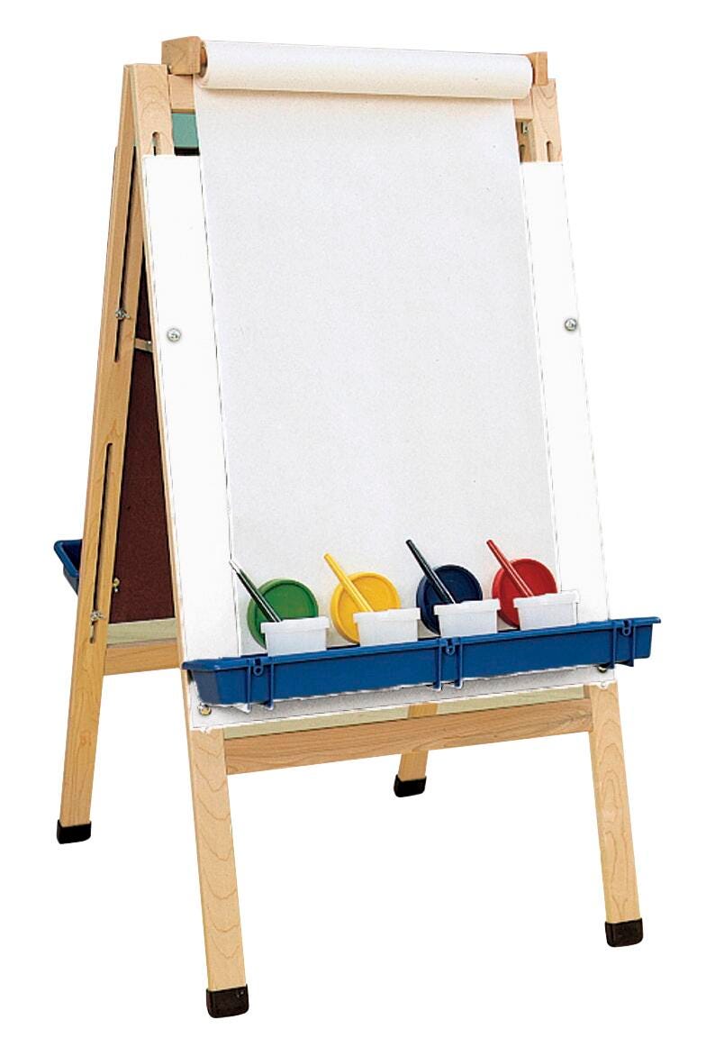 The Childcraft® Art Paper Roll Holder is a must-have addition to any easel, classroom, or art station. Designed to mount securely above the Childcraft Double Adjustable Easel (sold separately), this art paper dispenser provides quick and easy tear-offs for fresh sheets during creative projects or for easy cleanup. The sturdy soft maple wood frame complements any learning or play environment while keeping paper off the floor and within reach. Whether used for painting, sketching, or crafts, this durable and space-saving solution ensures children can stay focused on their artwork without interruptions. Assembly required.Features