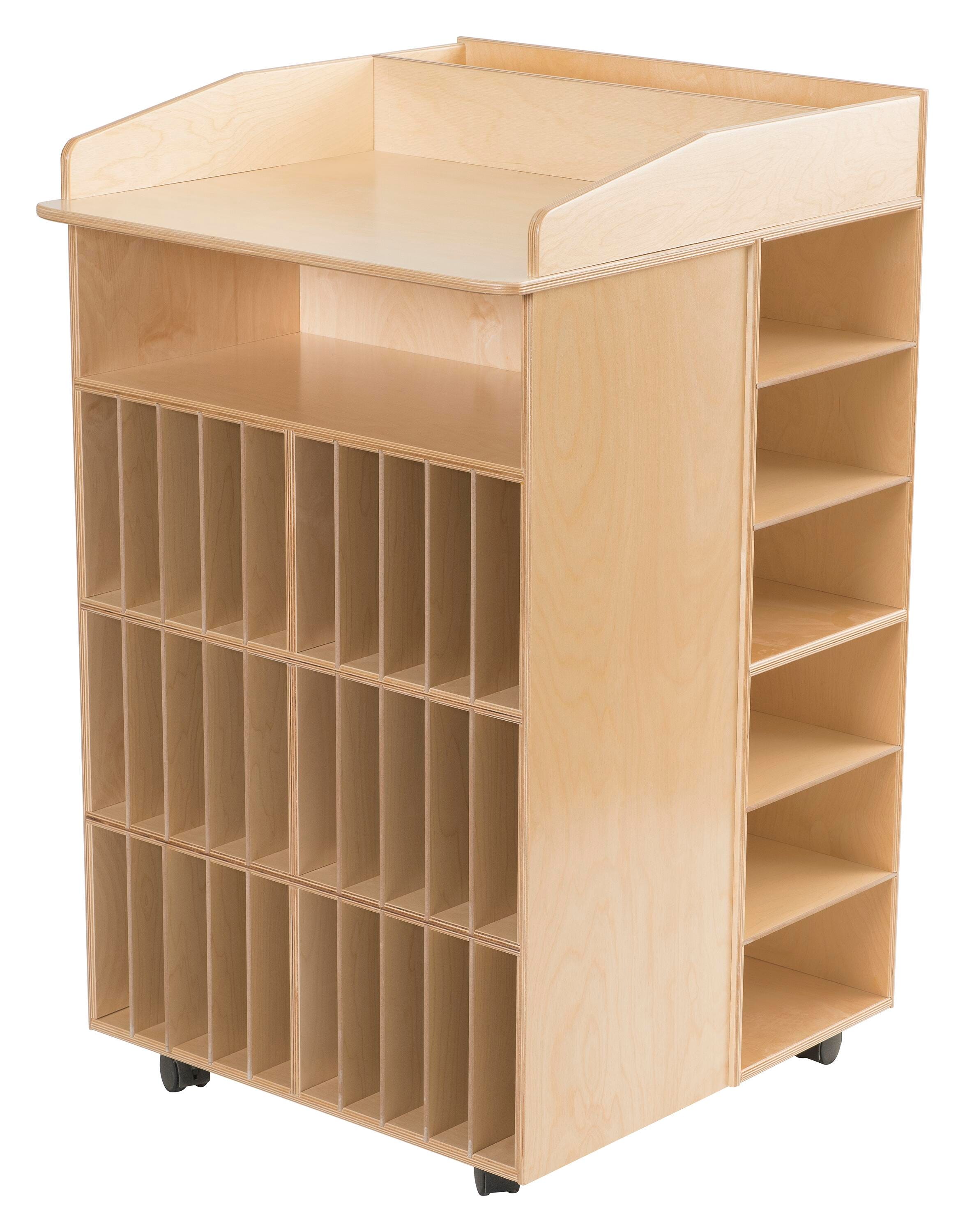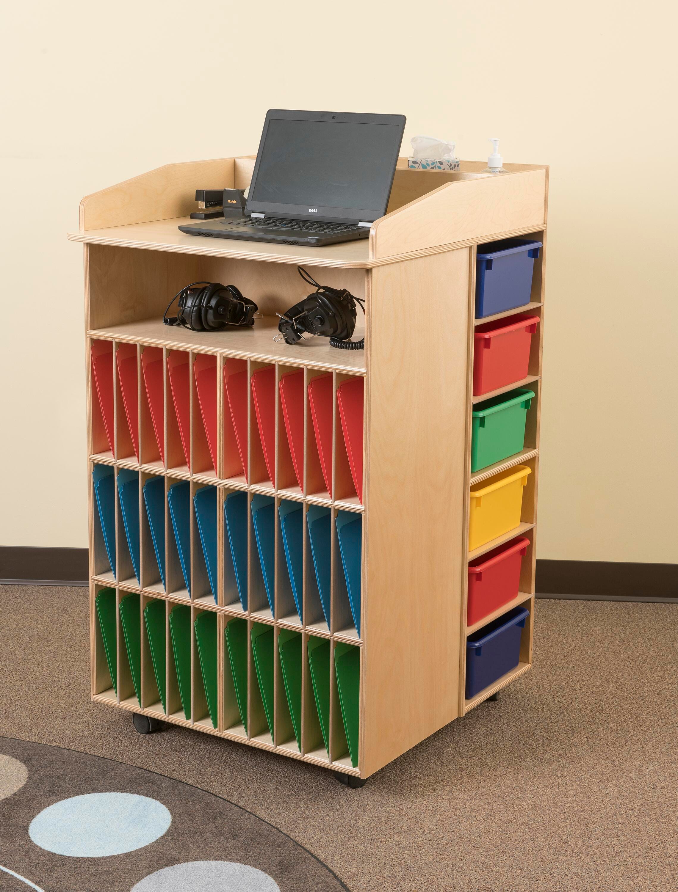 - 30 vertical slots provide additional storage for letter-sized folders, binders, or classroom materials