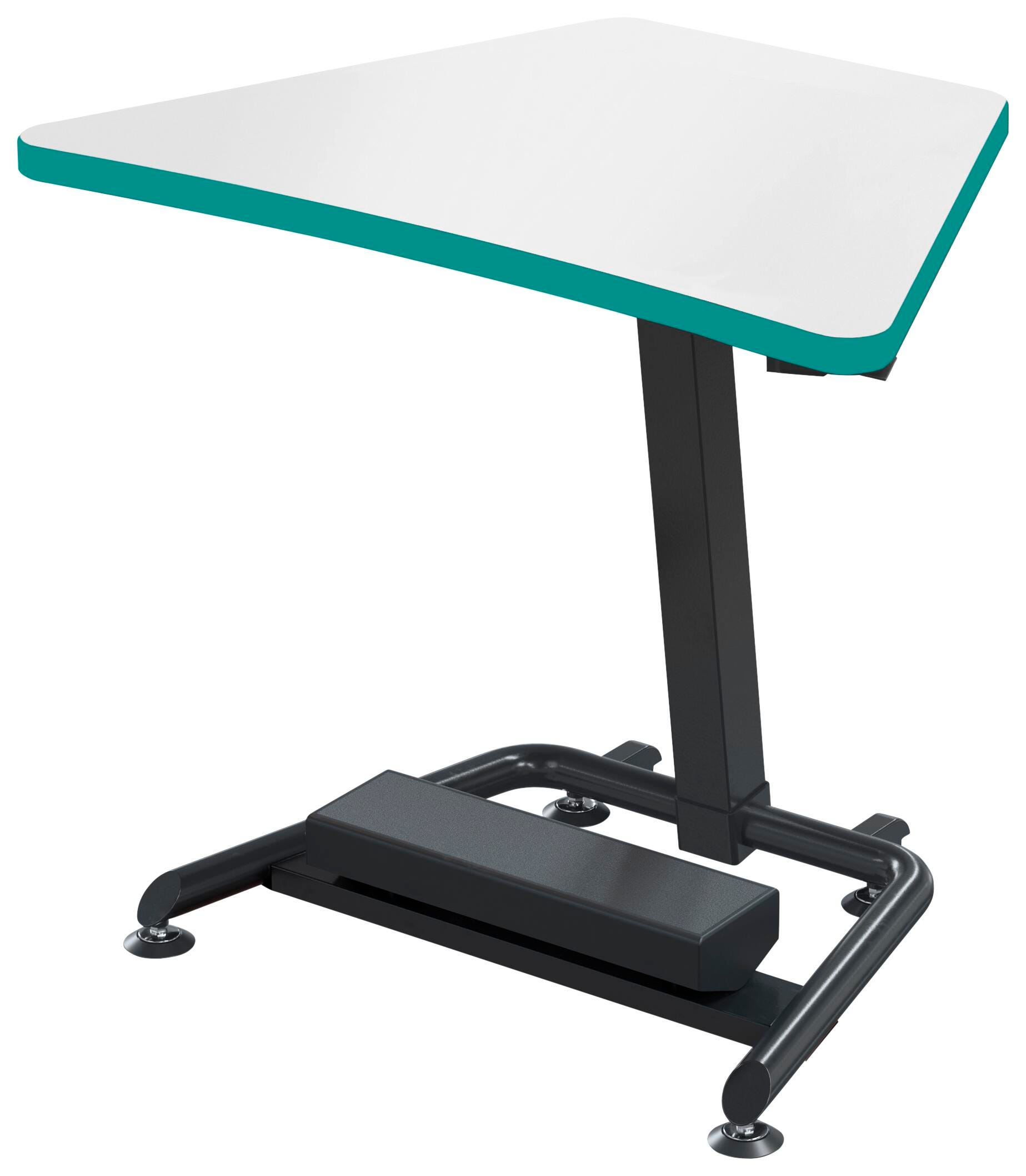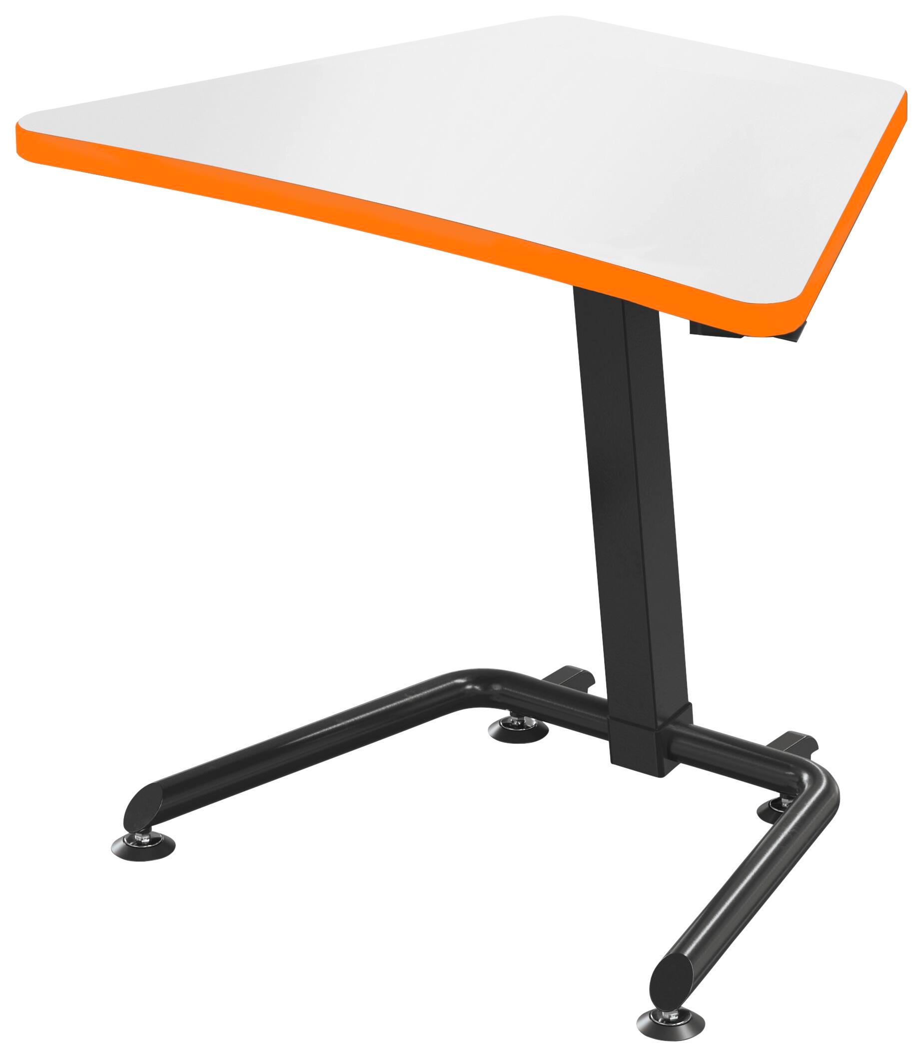 The Classroom Select Height Adjustable Sit/Stand Desk is an easy to move adjustable-height desk that is perfect for the 21st century learning environment. The Tilt-N-Nest model includes a simple lever release that allows the top to be folded down, with the desk then nestable for easy storage. The collaborative design with two casters, for stabilizing glides, and desktops that group together allow students to work together in pods in any classroom set-up. The height adjusts with an easy-squeeze lever that is located just under the desk top edge.