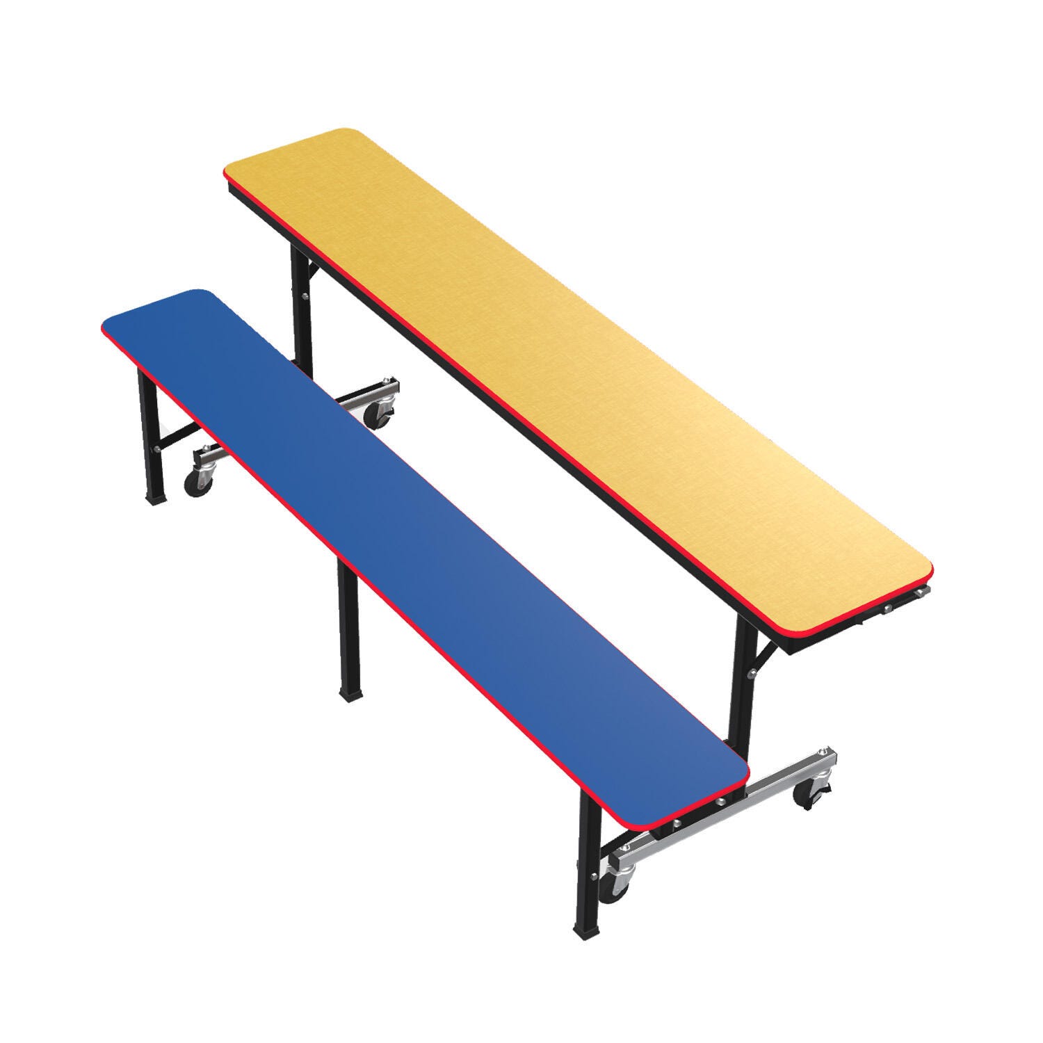 Classroom Select Convertible Cafeteria Half Bench and Table is made from a durable core with a laminate top for cleanliness and durability. This versatile bench and table is 6 feet in length. It can convert your multipurpose room from an auditorium to a lecture hall with a quick flip of the back rest. Your facility can be transformed into an efficient cafeteria by positioning units facing each other. Please note: This item is sold as one half. For a complete table, 2 units must be purchased.