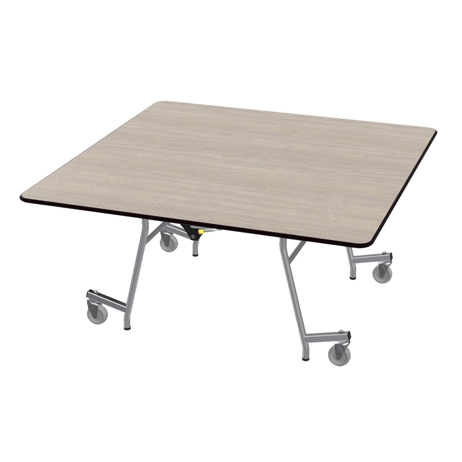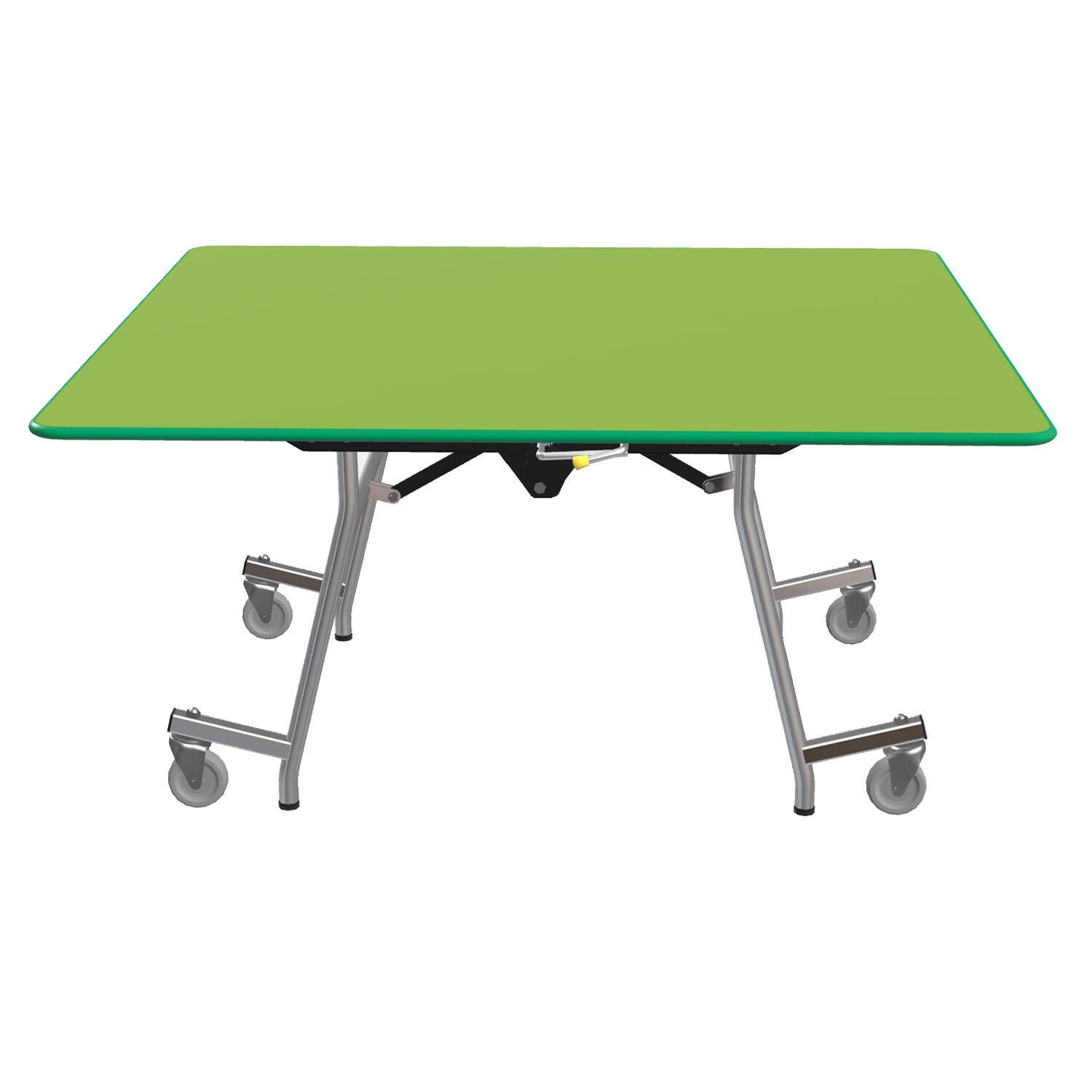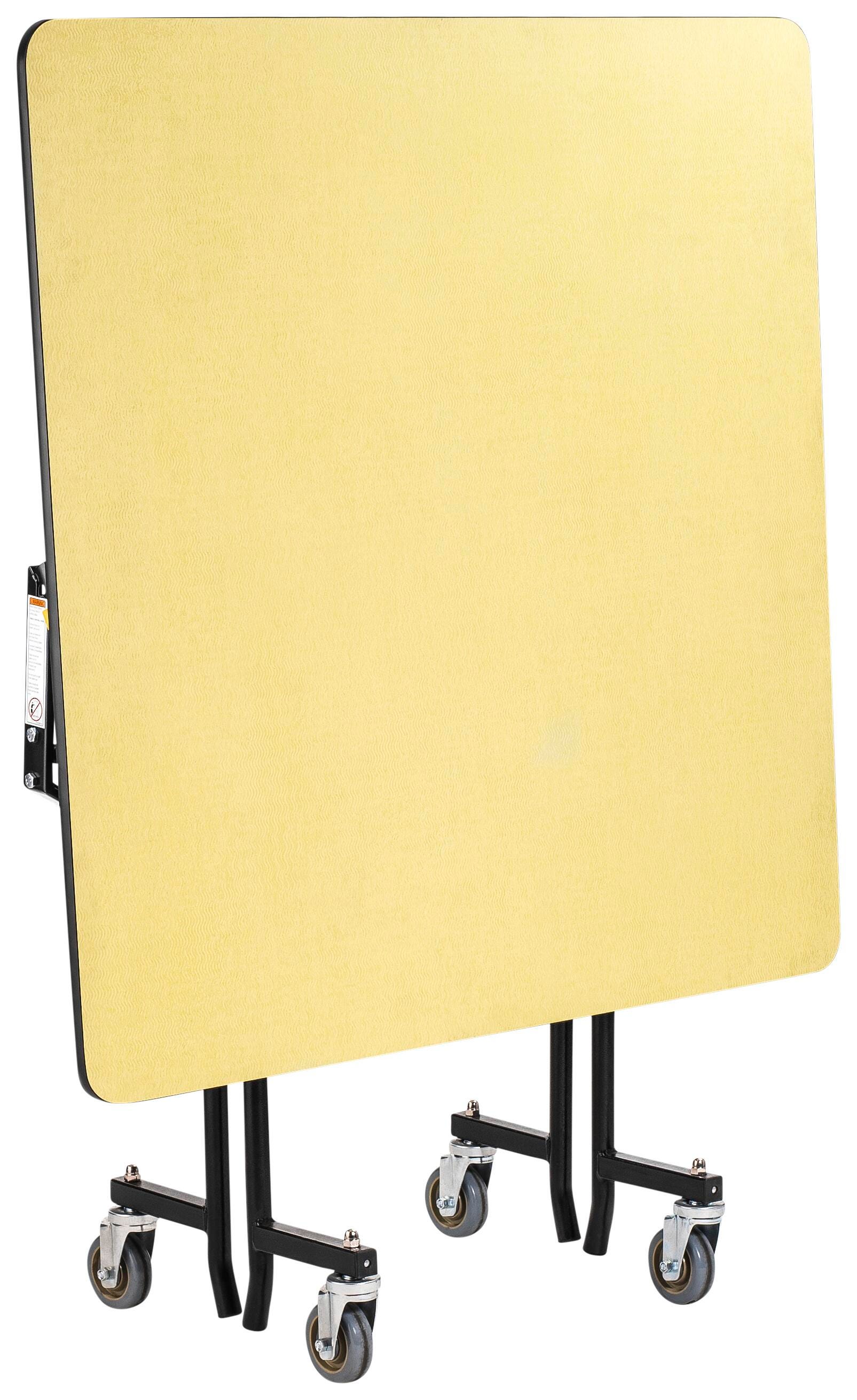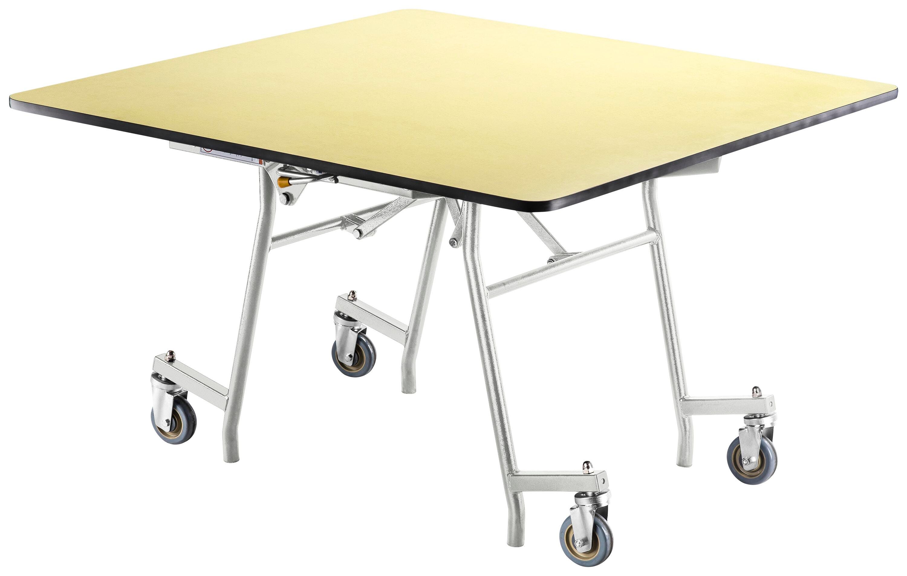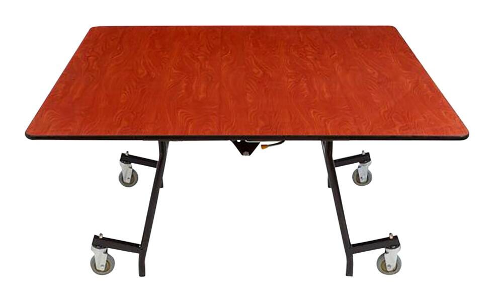 The one-piece design and durable structure make this the perfect multi-purpose table for cafeterias, banquets, and most events. When opened, this is a seamless surface that automatically locks with two points of manual release to fold and can be nested for easy storage. 4 inch double ball bearing swivel casters allow for easy transportation and lift off the floor in an open position to prevent table from rocking or shifting. Glass-filled nylon, high-impact glides allow no leftover marks when moving.