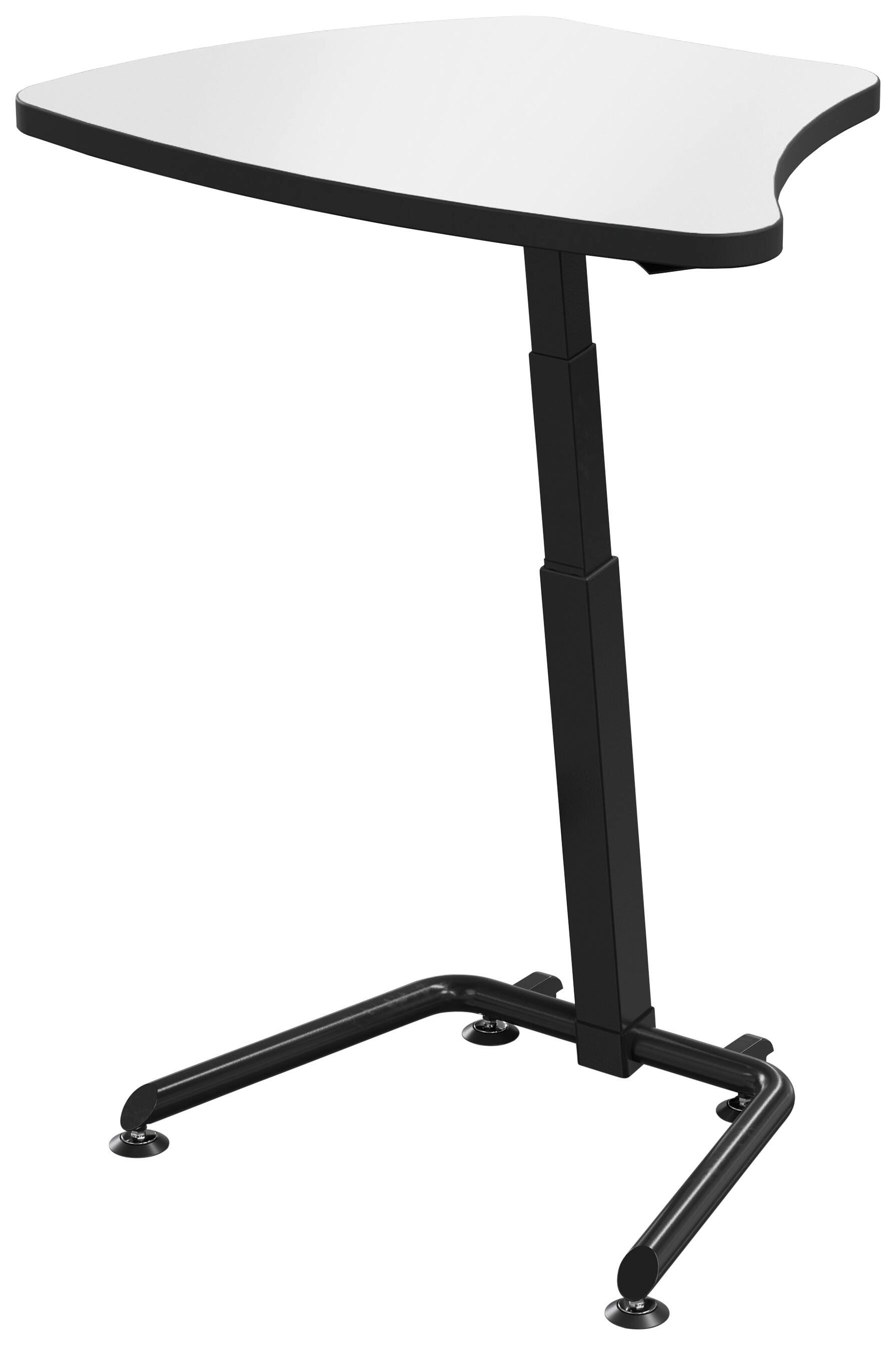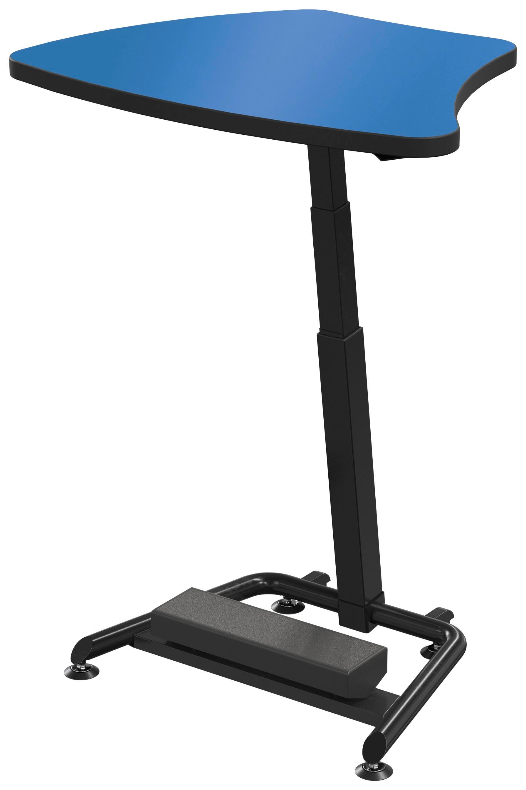 The Classroom Select Height Adjustable Sit/Stand Desk is an easy to move adjustable-height desk that is perfect for the 21st century learning environment. The Tilt-N-Nest model includes a simple lever release that allows the top to be folded down, with the desk then nestable for easy storage. The collaborative design with two casters, for stabilizing glides, and desktops that group together allow students to work together in pods in any classroom set-up. The height adjusts with an easy-squeeze lever that is located just under the desk top edge. The desktop height ranges from 27 inch to 44-1/4 inch.
