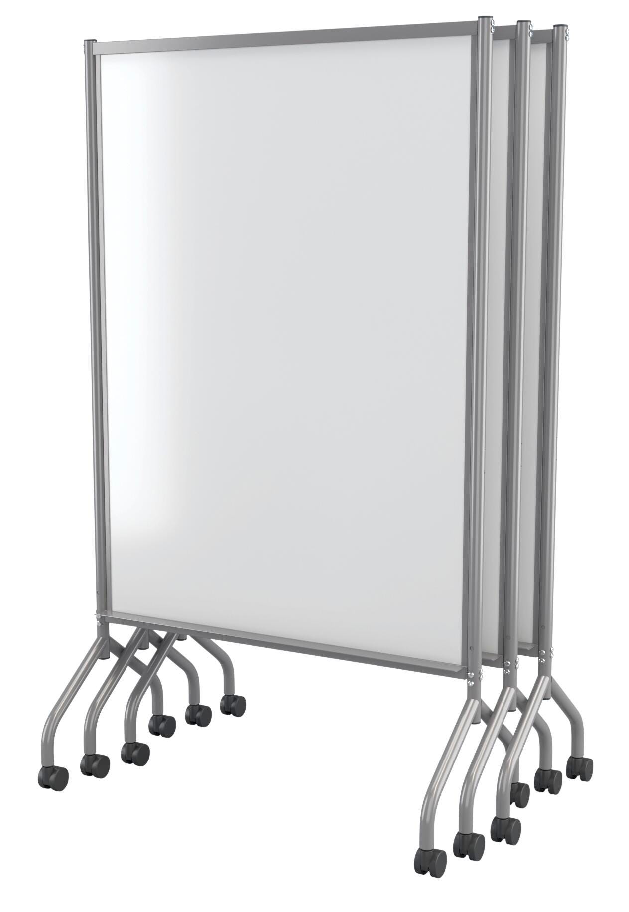This mobile and magnetic dry erase board has a double-sided writing surface of 54 x 38 inches. Available with a marker tray that is secured to the bottom of the board for easy organization. Easel is sturdy and easy to assemble. Magnetic board with anodized aluminum trim in Titanium color. Mobile for ease to shift to and from any classroom and can be nested for space efficiency and storage. Wide base design is ideal for stability with heavy duty locking casters.