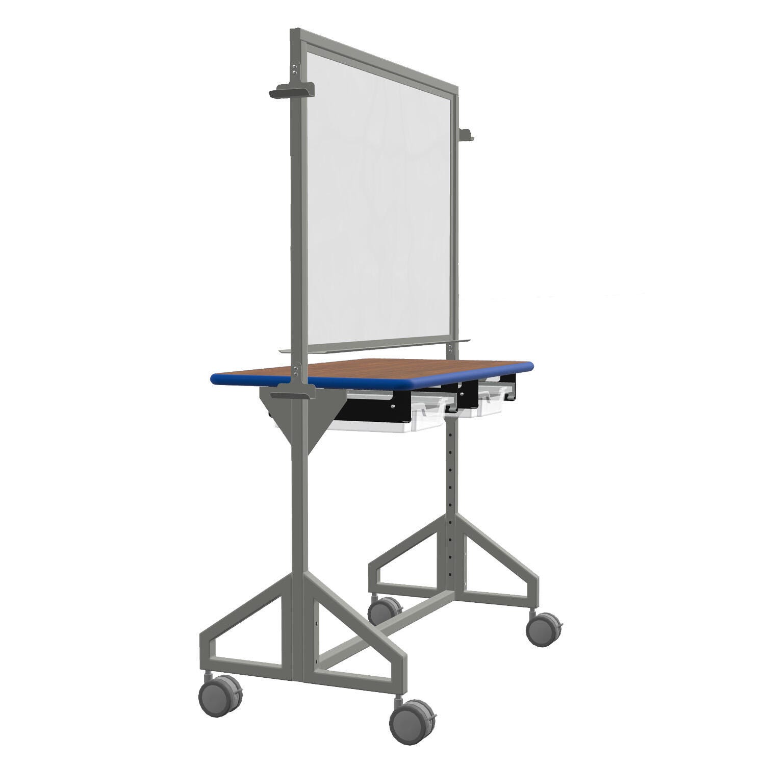 Description The Classroom Select Mobile Makerspace Markerboard is perfect for any type of classroom project, featuring a durable steel frame, a 2-sided magnetic markerboard panel, and optional sliding tote rails for use with Geode Series storage tote trays (item 2027667, sold separately). This worksurface's table height adjusts from 16-36 inches in 1-inch increments, accommodating a wide range of student age groups. Generously sized 24 D x 40 W inch worksurface is available in your choice of Laminate, Markerboard, T-Mold, or LockEdge. The Markerboard bottom tray allows for convenient storage of markerboard writing utensils. Heavy-duty 2-inch locking casters make mobility simple. Side panel hooks are perfect for storing the Classroom Select Portable Markerboards, sold separately.