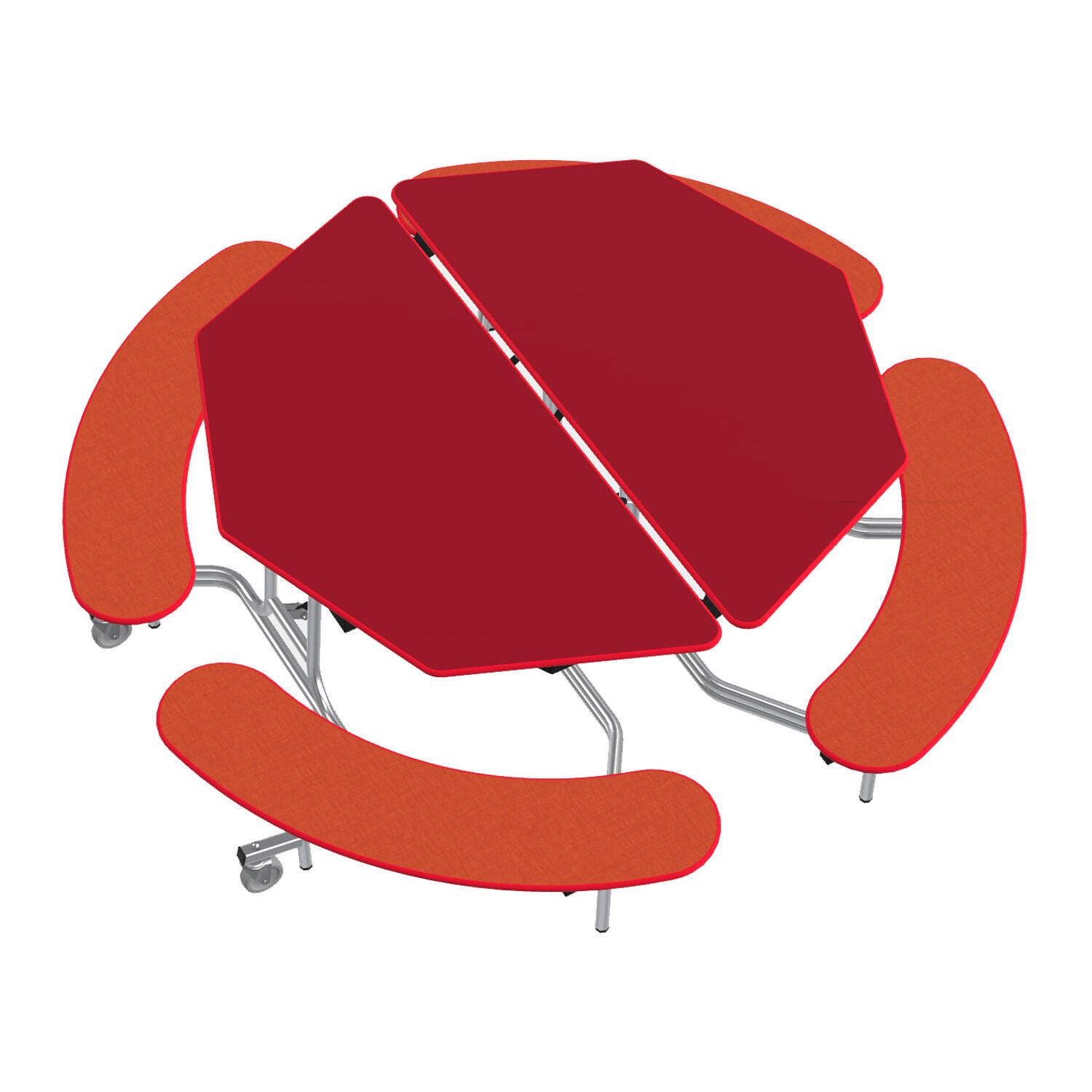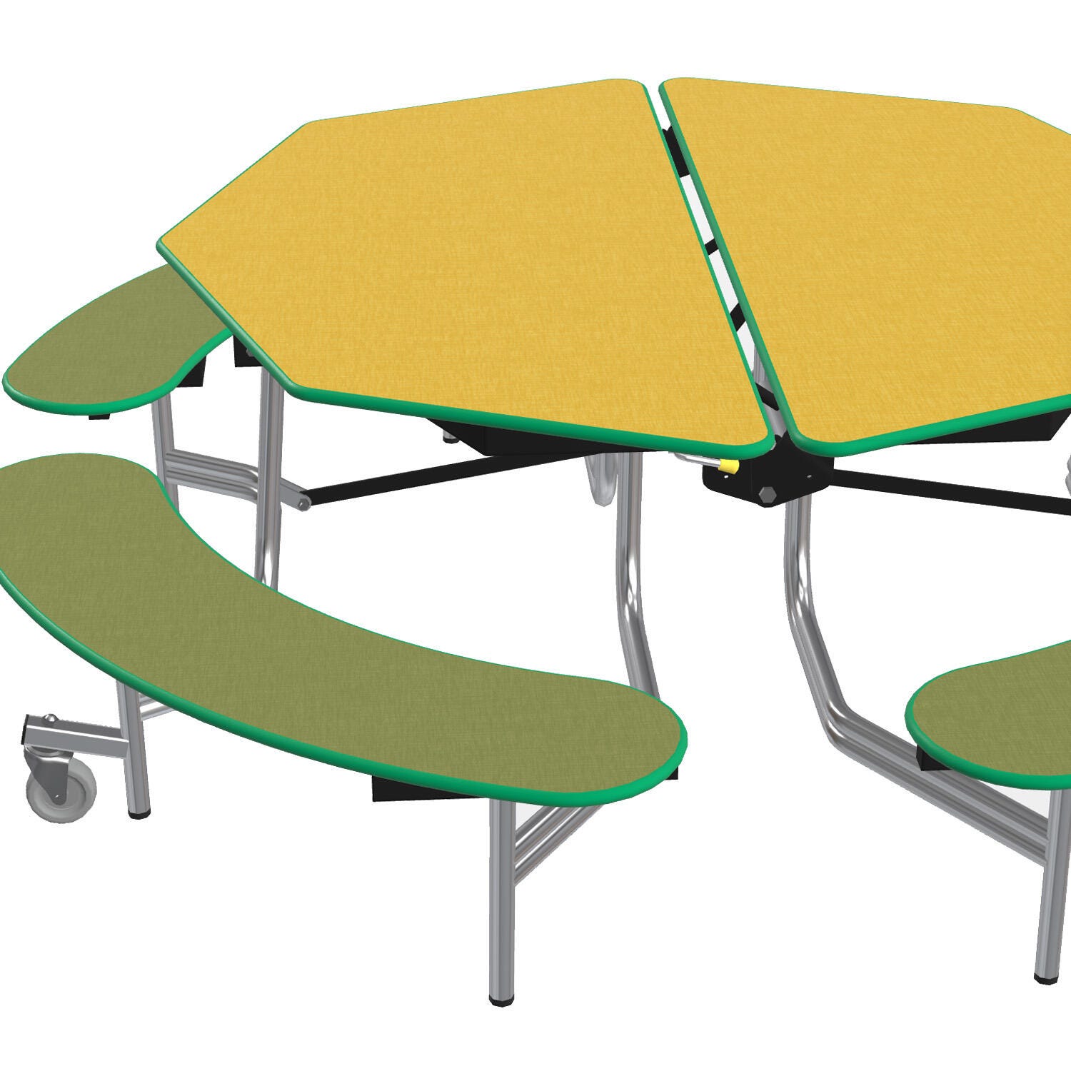 Classroom Select Mobile Table with Benches, Octagon, 60 Inches, LockEdge