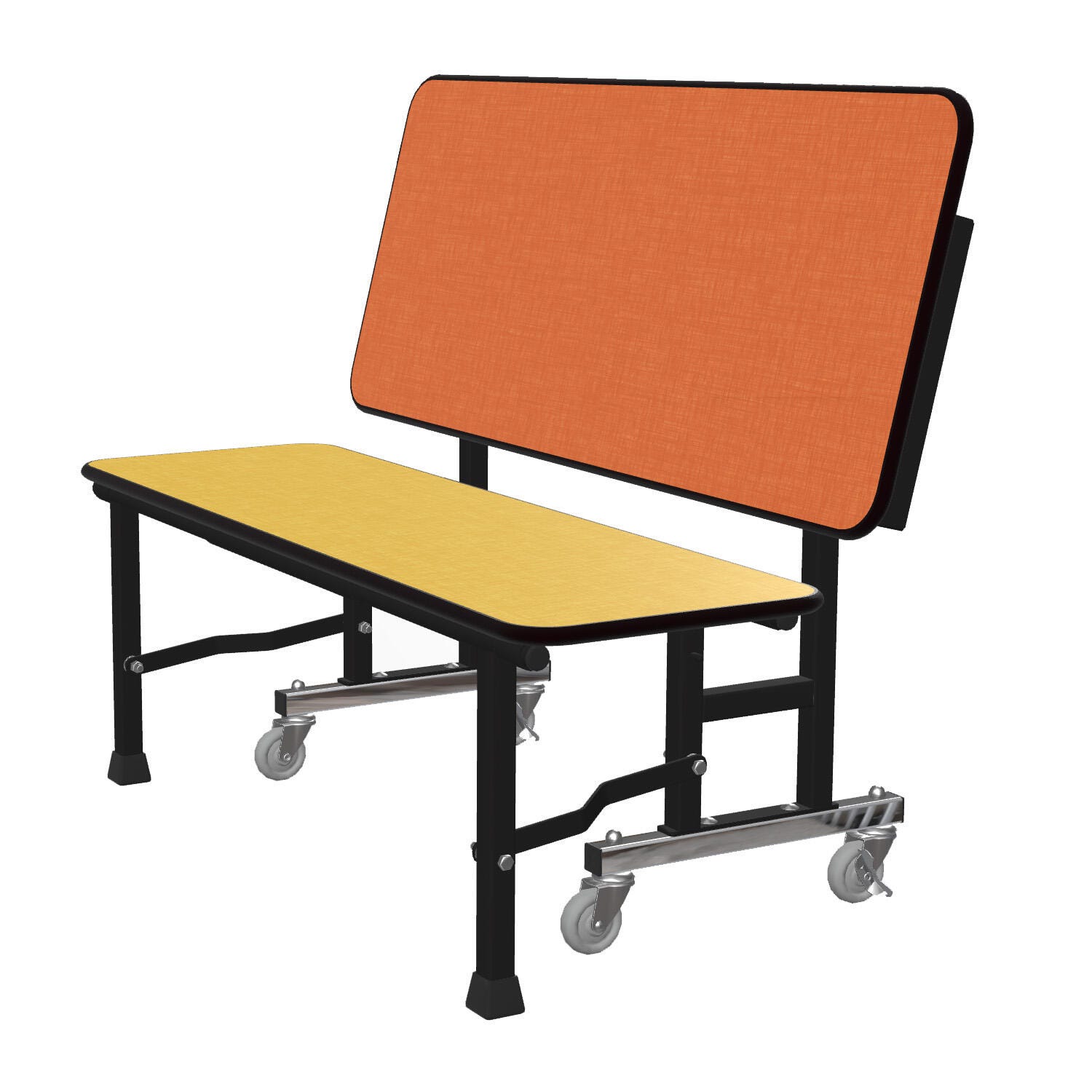 Today’s cafeterias have become multi-purpose spaces that require mobile and multi-functional furniture. The Classroom Select SimpleStore Booth System is ideal for such an environment. Built with 14 gauge steel, 2 inch tube legs, and double ball bearing non-marring 3 inch casters, the SimpleStore provides the ultimate in strength and mobility. It’s simple to reconfigure for multi-purpose use. The SimpleStore benches feature fixed high backs with a slight 12-degree pitch providing the perfect contour for comfortable seating. Rubber Grip-Tight glides automatically engage with the floor when opened along with locking casters to keep your seating arrangement nicely in place. Tables open and lock automatically and are easily released with a pull of a handle. The SimpleStore Bench and Table top flip up and nest for optimal storage.