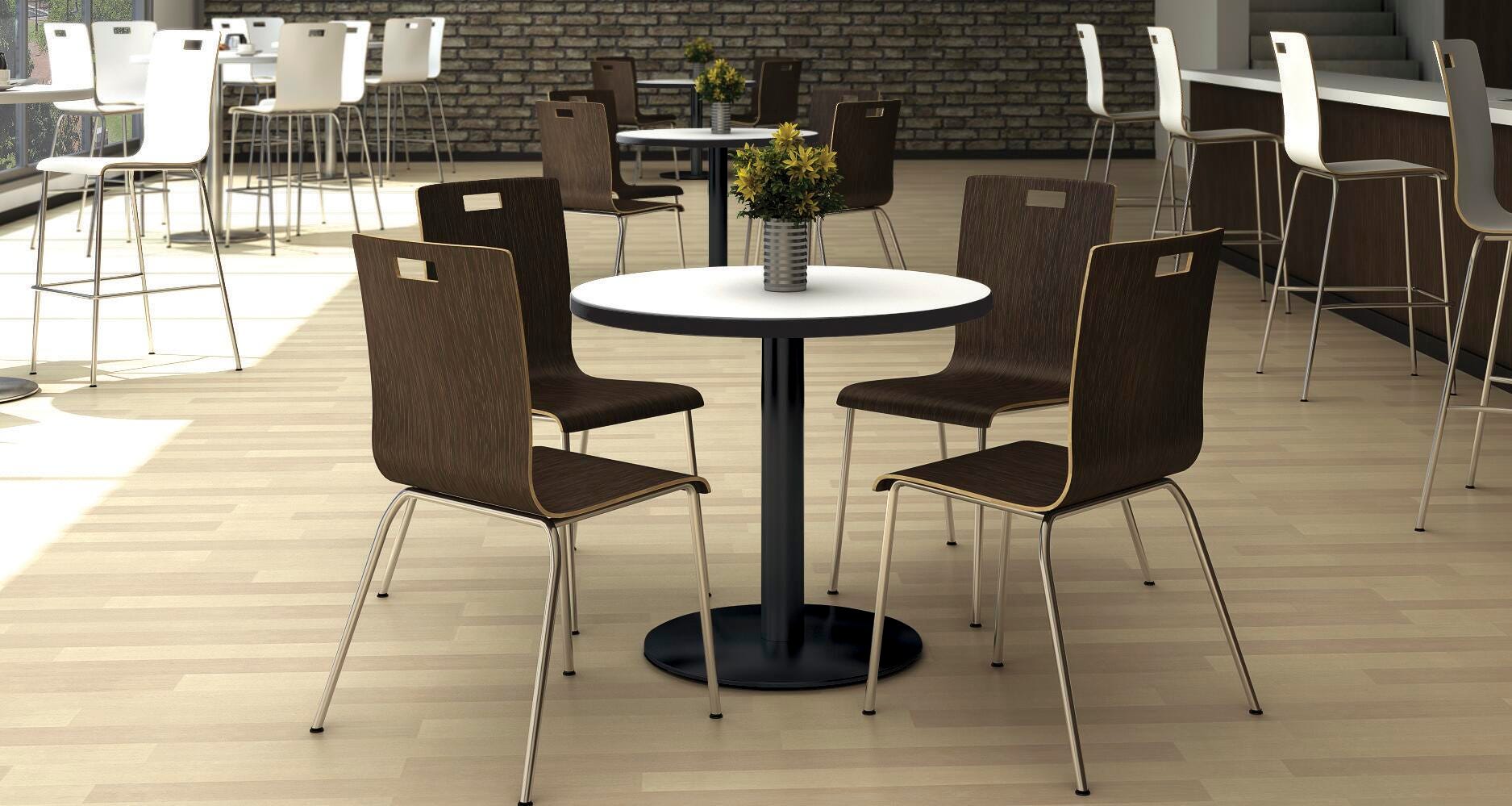 KFI Seating 9222 Series Cafe Chair entails one-piece construction, featuring a bent plywood shell and slight flex in the back for maximum comfort, plus laminate finish for durability and easy cleaning. Frame is constructed with durable 3/4-inch round tubing of 16-gauge steel. Stacks 5 high.Features