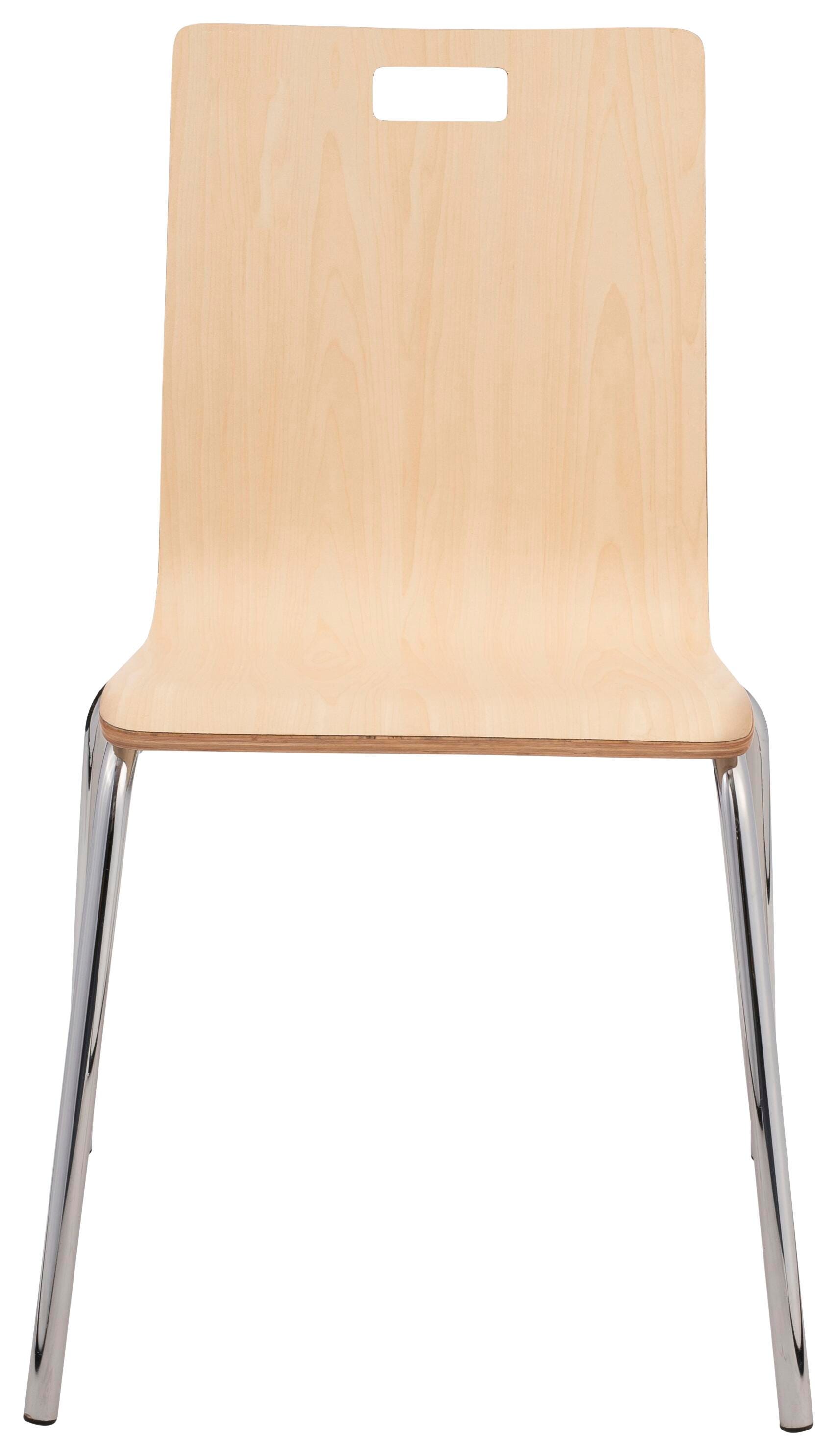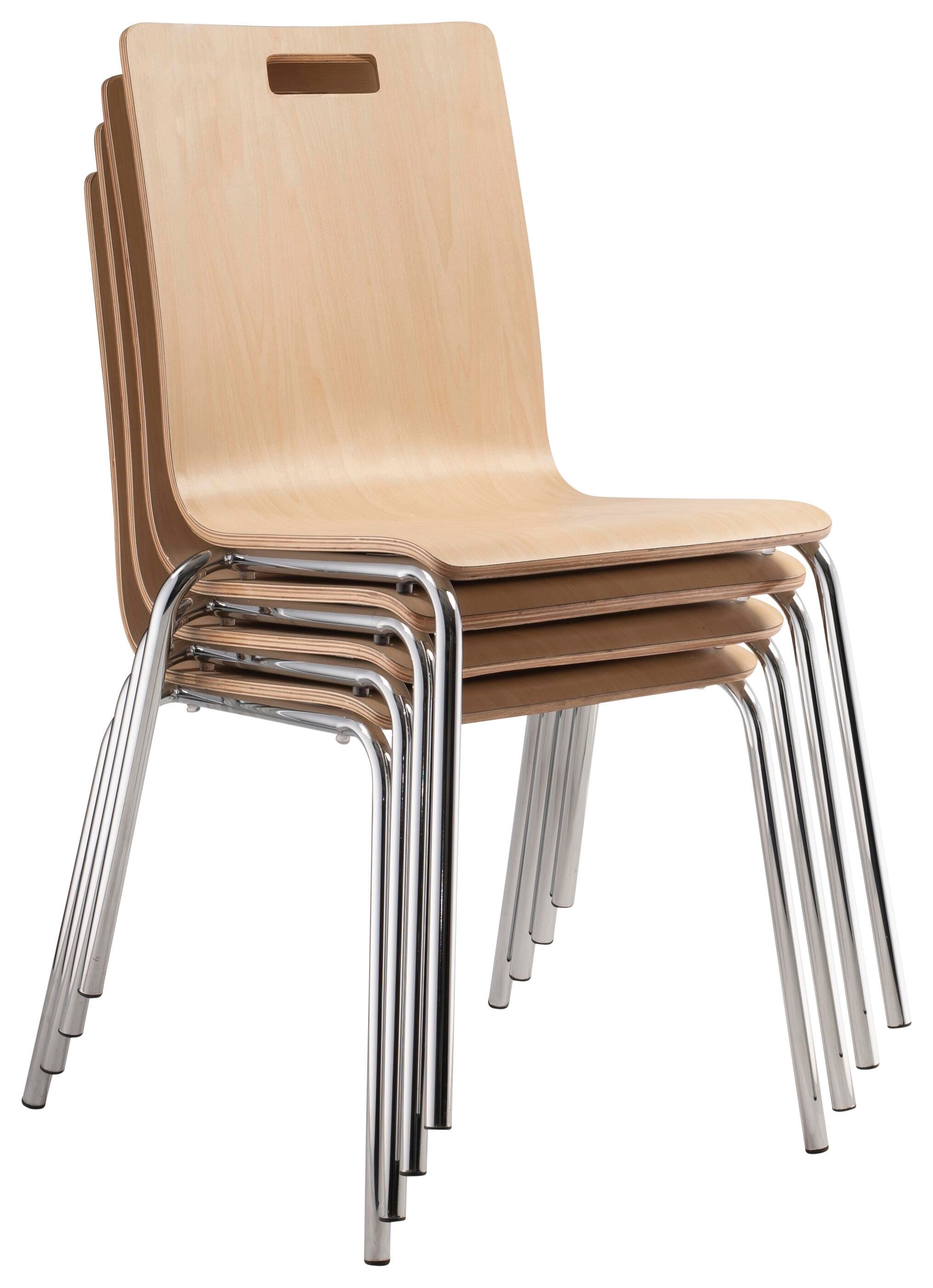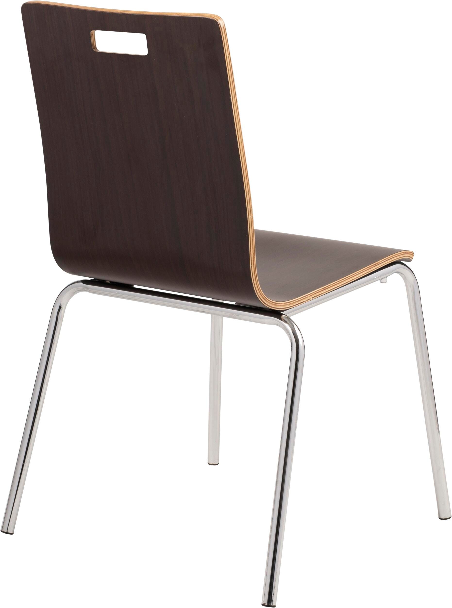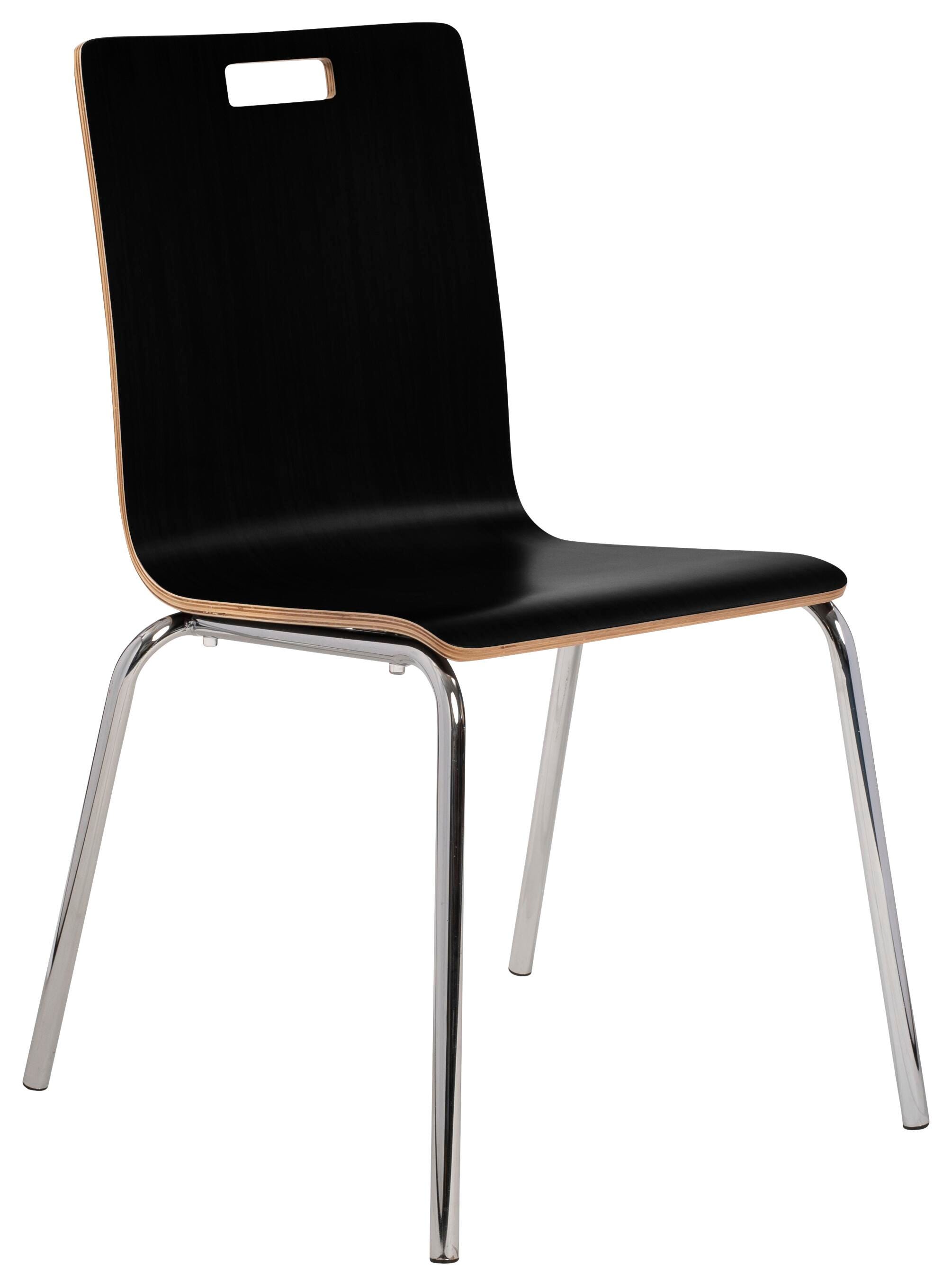 The Bushwick Café Chair and Barstool from NPS features an 8-layer bent plywood seat with a high-end HPL finish, legs made of 7/8 in. 16 Gauge chrome tubing, and non-marring, plastic glides. Modern handle for easy movement and storage. The plywood core is made with poplar wood and eucalyptus wood, and the weight capacity exceeds 500 lbs.