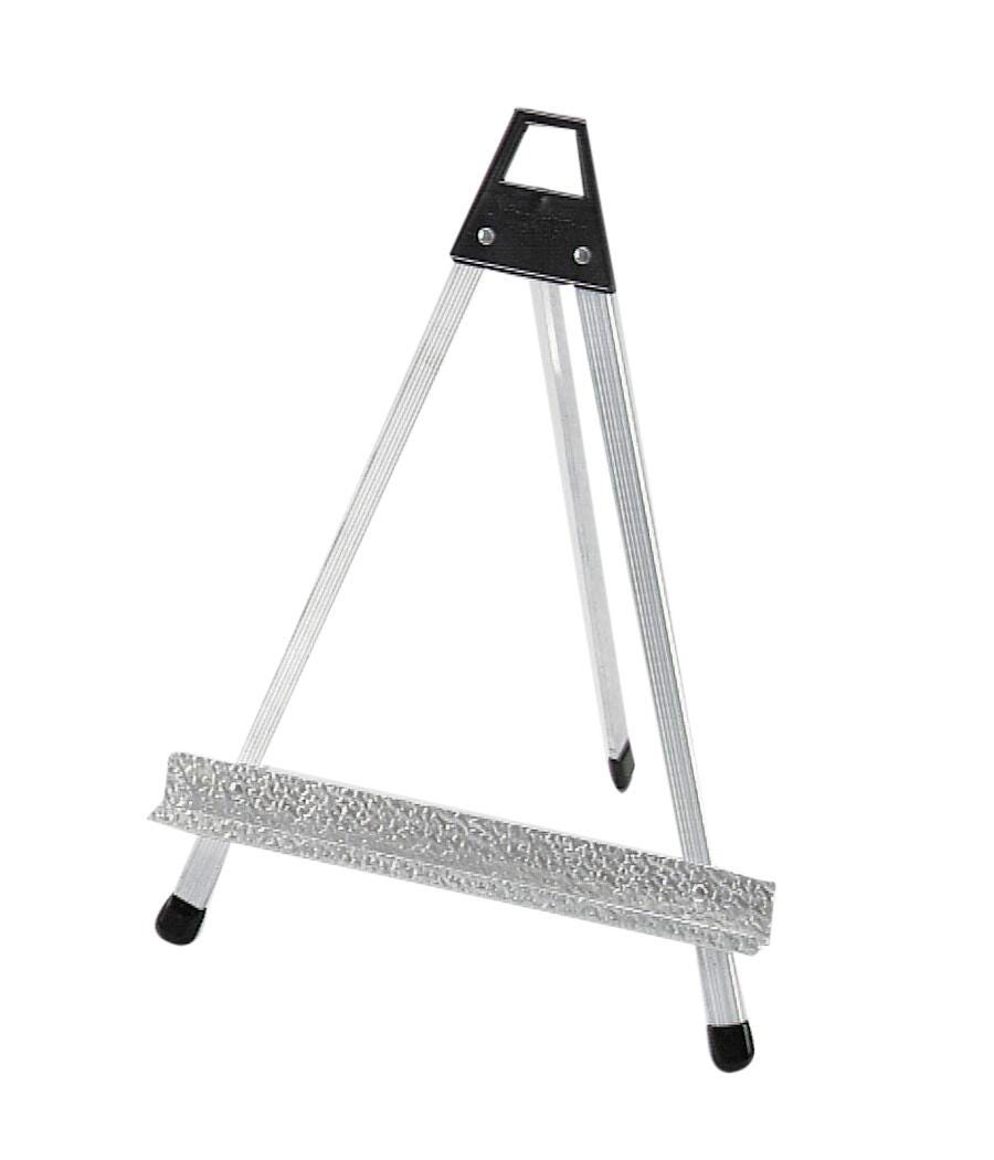 School Specialty Economical Aluminum Table Easel with canvas-holder/support bar features a plastic top reinforced by a steel plate. 5.5 oz Light weight and practical easel fits into a standard 12 in x 16 in art box when folded.Features